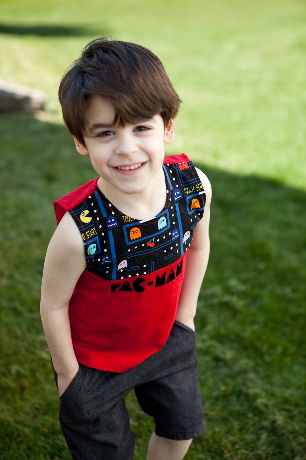As with all of Melissa’s patterns, the blank tank just begs for you to embellish and make it your own. I took fabric markers to Toothless and some HTV to Pac-man and ended up with two great shirts that fit my boys and their personalities perfectly.
